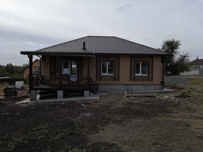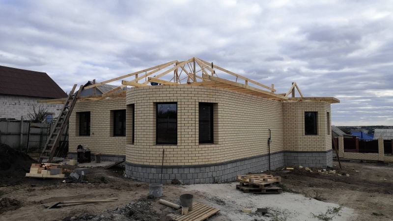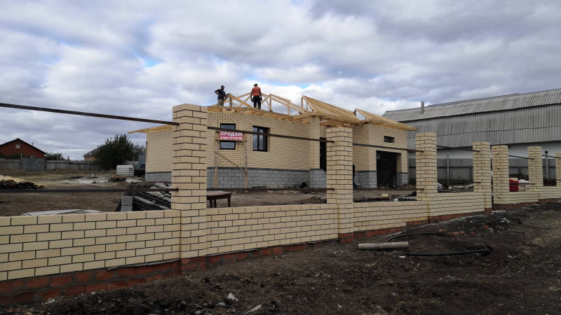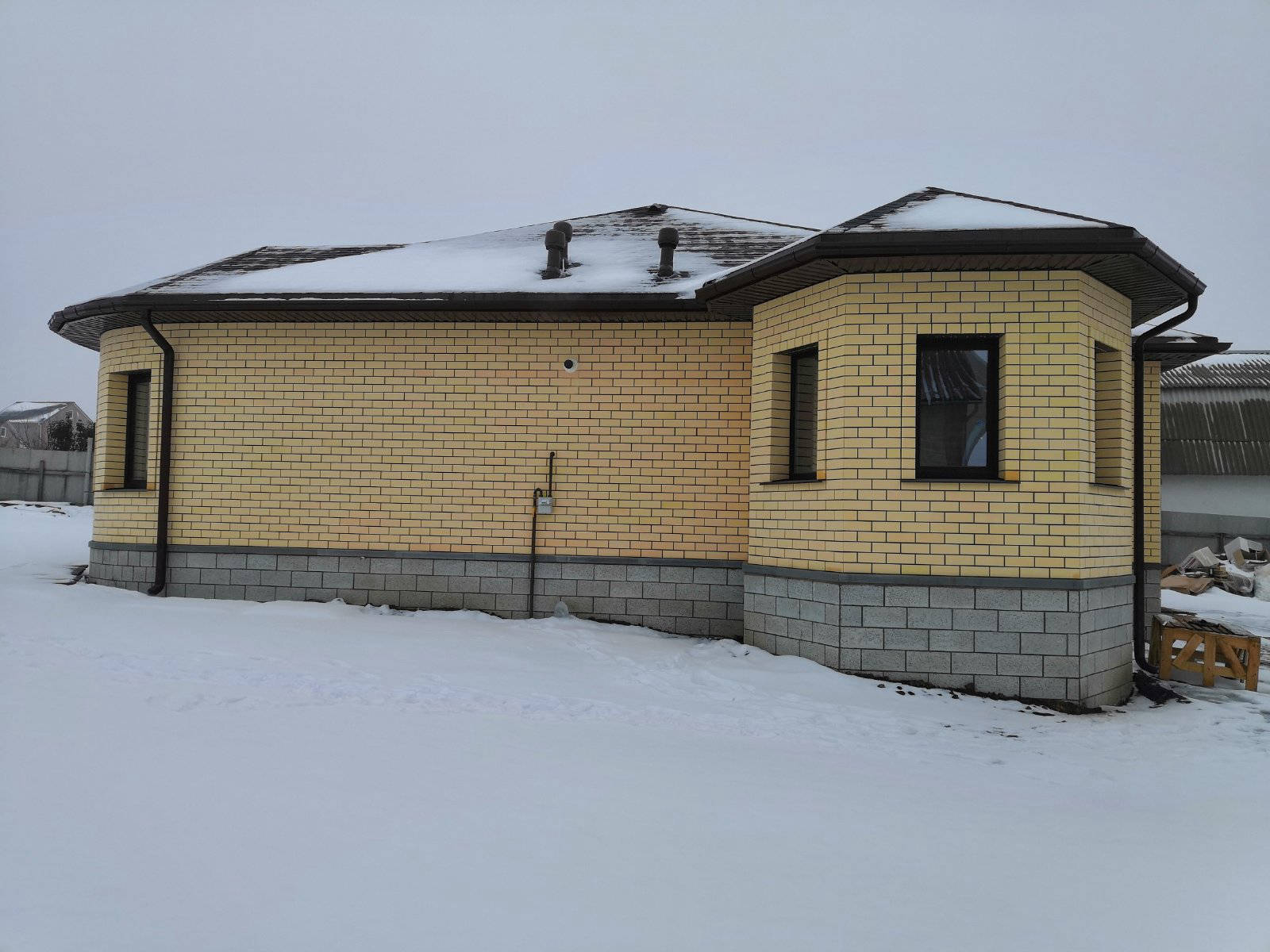 Стены - керамзитобетонный блок, утеплитель, облицовочный кирпич
